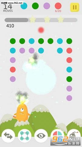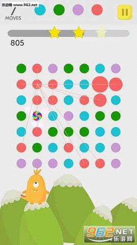 在奇妙星球的不同地域棋盘上,你只需要轻轻一点,在同一行列上相同颜色的小点(至少两个)就会自动消除。将四个以上的相同小点消除,可获得一个百搭的彩色特效;消除六个以上的,就可获得该颜色的多边形特效,点击它就可以自动连接附近的同色小点(不局限于同一行列)进行消除。