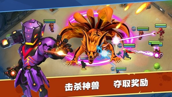 集结您最强的超级英雄战队,挑战神兽副本,击杀最终BOSS,夺取稀有材料,合成史诗装备,大幅提升英雄战力。