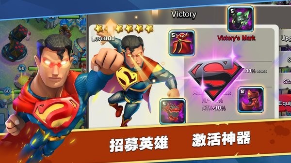 普通、稀有、史诗、传说,解锁更多高品质超级英雄协助您防御基地。升级和觉醒英雄,寻找并激活英雄专属神器,大幅提升各项属性增益。