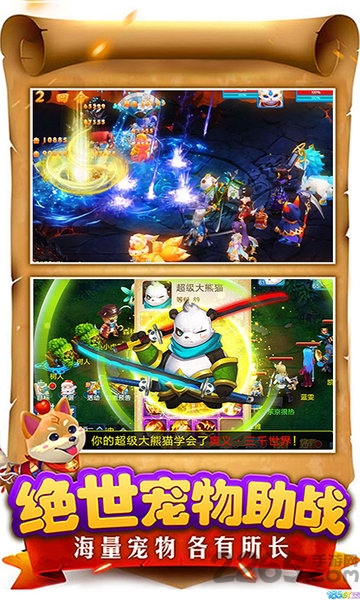 六大主角职业各具特色,相生相克,三国著名武将鼎力相助,征战三国乱世,萌态十足的神兽宠物环绕期间,相伴终生;精彩纷呈的娱乐社交,这一场游戏之路,不孤单。Q萌的游戏画风,丰富多彩的休闲玩法,带你走进全新的三国世界。