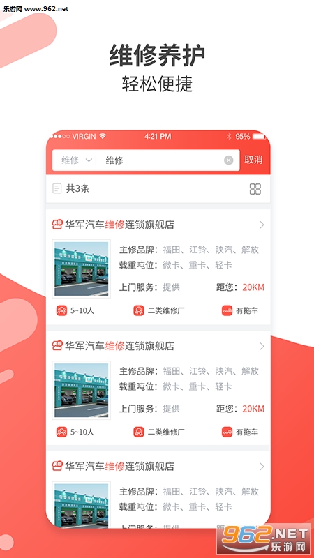 易通汽修是将车辆后市场资源信息进行整合共享,是提供全方位专业信息服务的APP,整合了维修厂、轮胎经销商、润滑油经销商、油气充电等资源信息,方便车主及时查询附近的修理厂、轮胎经销商、润滑油经销商、预约维修服务及购买相关配套设施,并可在线发布救援信息,为车辆及时排除故障。
