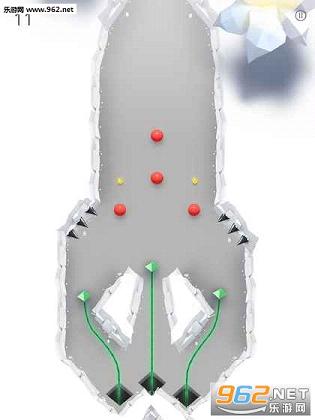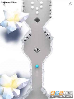 玩家需要在游戏里控制一个蓝色小球躲避黑球、冰锥、炸弹等障碍的攻击,不断滚动前进。
