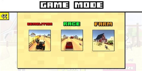 1.方块农场赛车有三种模式提供;你可以选择拆除模式,将所有形式在道路中的汽车或者动物摧毁