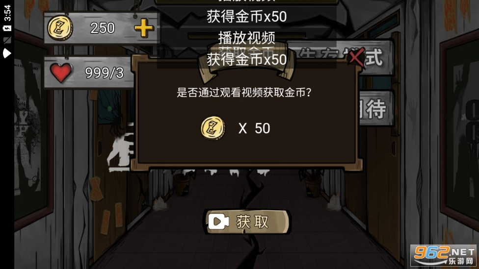 不看广告获得奖励。(看广告获得大量体力、金币,解锁角色等)