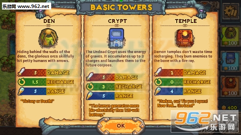 为了获得胜利,玩家在游戏时还可以收买附近的酒馆、城堡、矿井等,也可以攒够怪物身上掉落的骷髅和魔法水来发动一些大招。这些传统塔防以外的,略带经营和即时战略色彩的细节都为游戏增色不少。