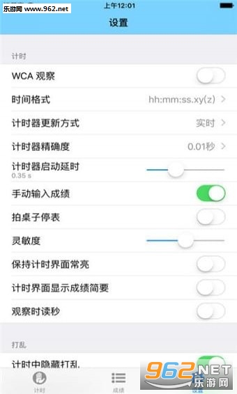 计时:除了常规的计时外还支持WCA观察、启动延时,每次计时结束后可确认+2/DNF,计时精确度为0.001秒。