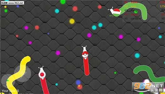 2、让敌人的头碰触你的身体,敌人就会死亡,并差生大量光点,吃掉他们,做最长的蜗牛!