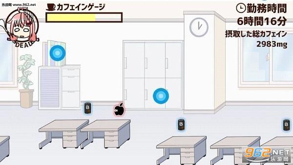 苹果会减少你的咖啡因值,顺便如果碰到了彩色的苹果立刻就会game over