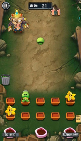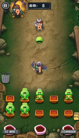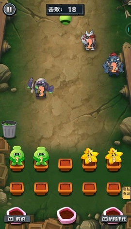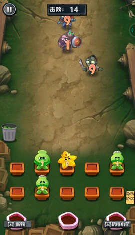 1、躺平花花斗僵尸安卓版,游戏画面中会不断出现一些抱着数字木牌的僵尸向下方前进