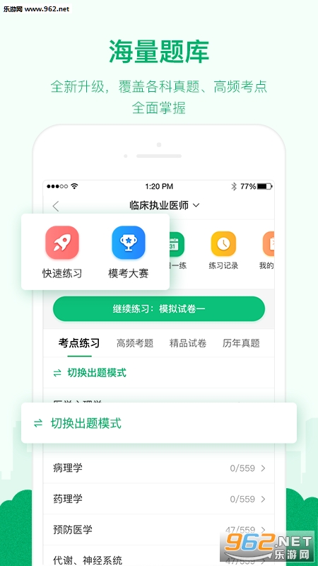 独家网课全免费,丰富优质的海量资源,随时随地可以离线下载哦!系统的视频课程、音频、轻松简单学习,覆盖各科目的重点、难点、考点,让学员通过实战体验,对整个复习过程做好查漏补缺;可随时观看与做题, 通过便捷的平台帮助考生更加便利的获取优质医考咨询及课程信息,随时随地轻松学习,快速通过考试。