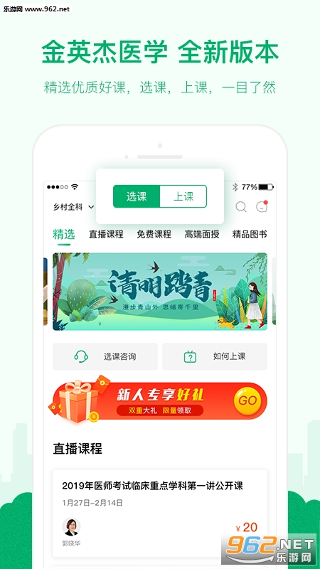 《 金英杰医学app》专为医学爱好者或医学从业者打造的权威学习应用,强大的功能全方位地满足医学爱好者的学习需求,为您的医学考试打下坚持的基础,让您的医学知识更上一层楼,手机在手,即可随时随地学习,精品课程,任你欣赏。