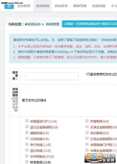3、请自行查好您要发布的媒体网站是否收录良好,及你的产品对搜索引擎友好!发布稿件内容图片请保持宽度最大为600px,发稿完成后请点击标题预览稿件内容是否完整显示。