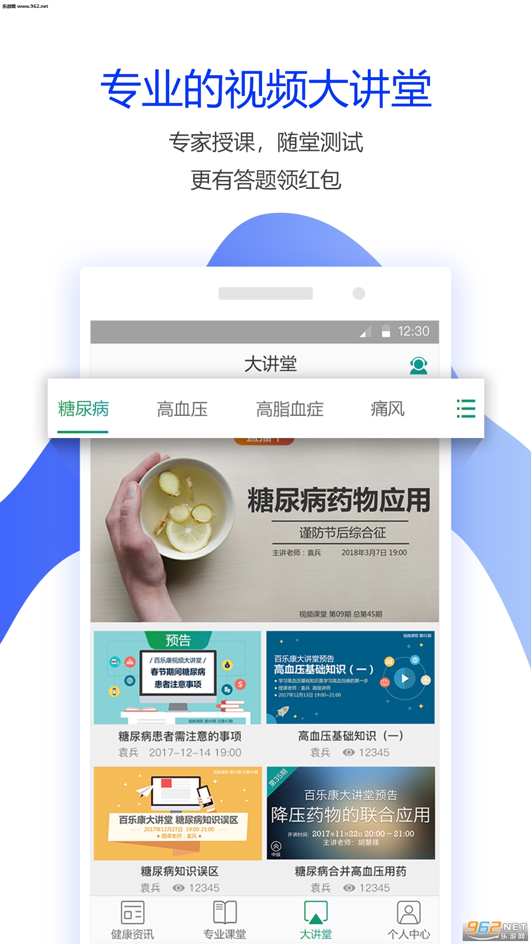 在线学习,以病种为分类,系统的、教材式、工具书化的专业慢病教育体系为基础,定期或不定期的公共讲堂为辅助,结合实际案例与在线测评,能够将知识融会贯通,活学活用。