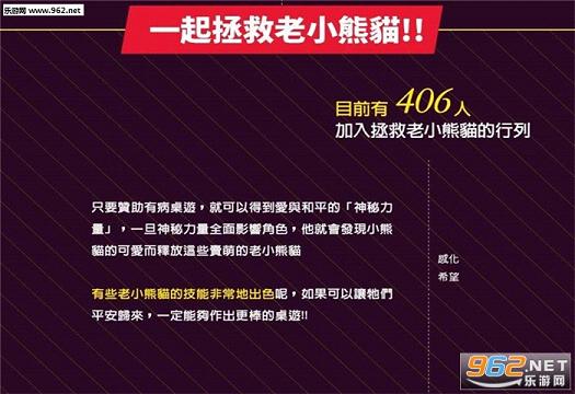 本次募资网页依旧延续了一贯的有病风格更有《有病》系列中的角色友情客串,同时「有病制作」也为赞助金额及目标做了游戏性的设计,并命名为《拯救老小熊猫》,透过用「神祕力量」感化小熊猫绑架犯的方式,让那些能够解锁新功能的小熊猫顺利回到工作岗位,以协助桌游更加完善。
