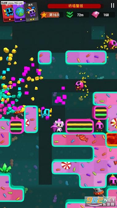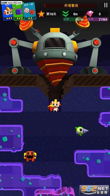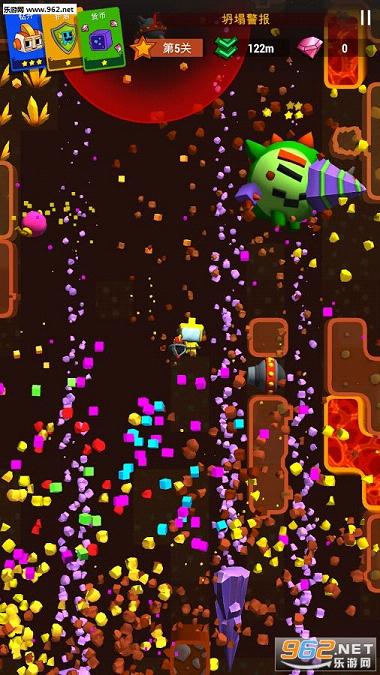 小心那些疯狂的怪物,熔岩,激光和坍塌,挖得越深还能发现各种水晶。配合使用多种强力能力卡牌让游戏更加有趣,更加刺激。