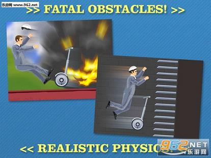 玩家将控制一名角色驾驶一辆独轮车,利用独轮车行动来越过各种障碍达到终点。简单一句话概括了游戏的全部内容,但是这其中的内容却蕴含了许许多多的陷阱。也许天空中会突然落下一辆车来砸你,也许地面上平凡无奇的路会突然加速升高将你夹死,也许半空中飘飞的东西是炸弹。