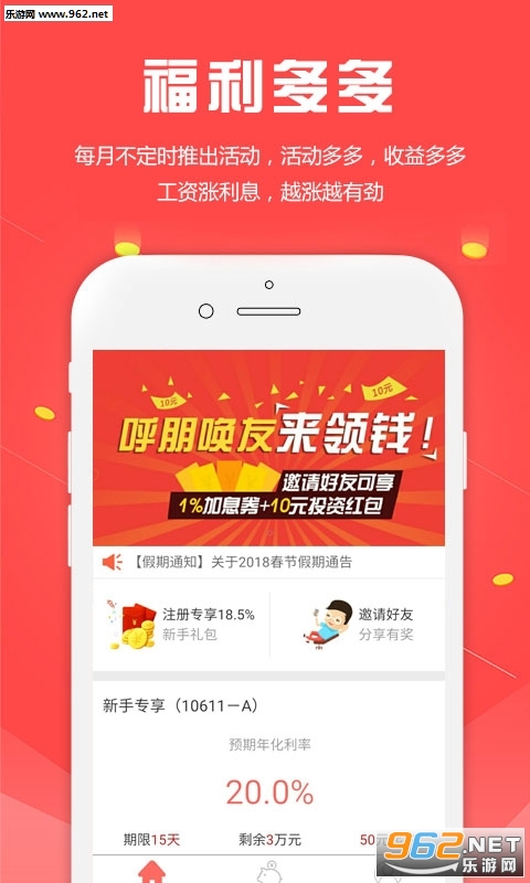 每周每月活动加息、红包福利享不停;
