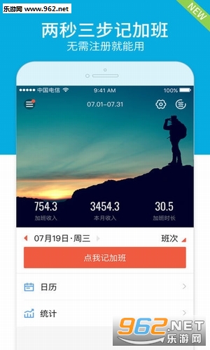 无需注册登录,便可记录加班小时。