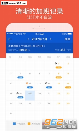 日历记录。普通加班、周末加班、节假日加班,轻松添加,一目了然。