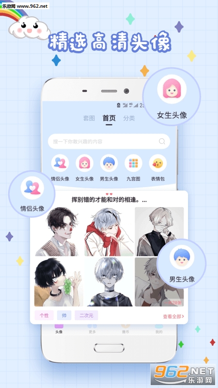 实用的头像软件,头像是我们精彩需要用到的东西,比如头像、qq头像等,本款软件中有着动漫、唯美、非主流、情侣等不同风格的头像,喜欢的朋友可以下载试试。