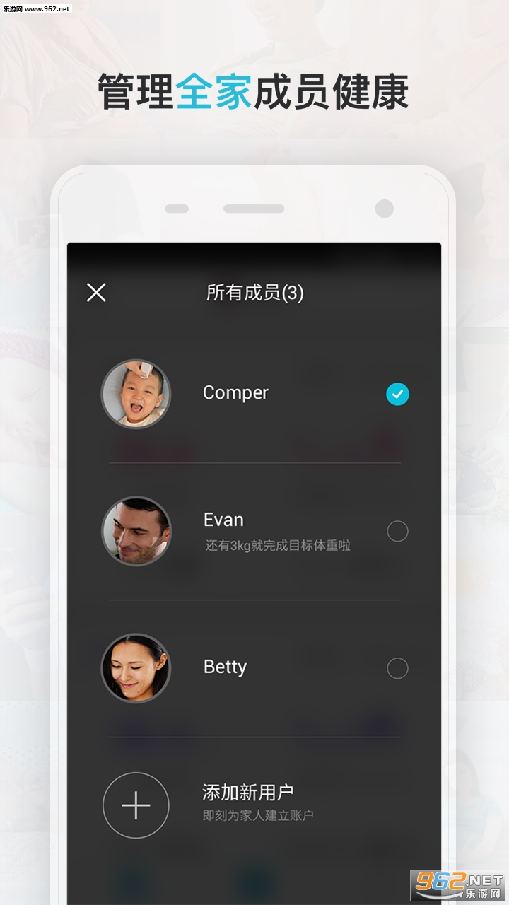 支持建立多个用户,记录您与家庭成员们的体重、体温等健康数据。