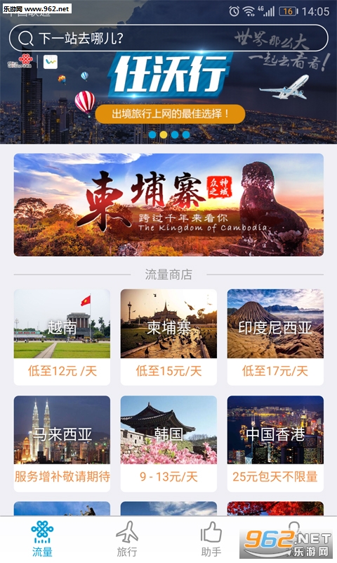 国际流量订购专用客户端!由中国联通为联通手机用户倾力打造,让用户能够出国后享受目的地国家/地区的本地数据流量服务与价格,覆盖全球70余个国家是出境旅行上网的不二选择。