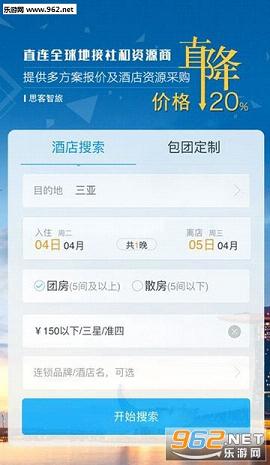 团队定制询价和预订:丰富灵活的会议及旅游团队定制平台,提供酒店、机票、用车、签证、门票、活动、地接服务预订等一站式出游解决方案;