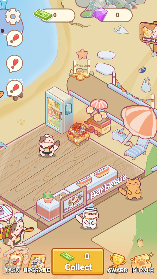 《猫见食品摊Cat SeeFood Stall》是一款模拟经营游戏,玩家将经营一家海鲜烧烤店,并将其打造成镇上最热门的场所。游戏中你将再海滩上经营你的海鲜烧烤店,同时招募更多的猫咪员工来运营你的小店。游戏的玩法轻松有趣,现在就来下载试试吧!