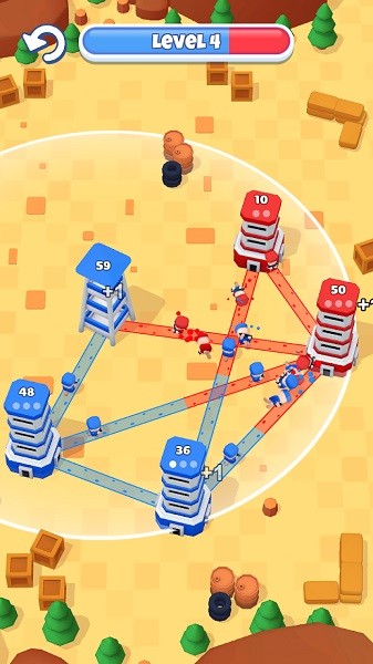 摧毁你所有的对手并一个一个地拥有他们的基地。您将从蓝色的开始,通过将手指从蓝色底部滑动到另一个来捕捉其他人。手指滑动进入战斗,看着你的小战士消灭敌人,巧妙地分配你可爱的小部队来保持你的位置并战胜敌军。