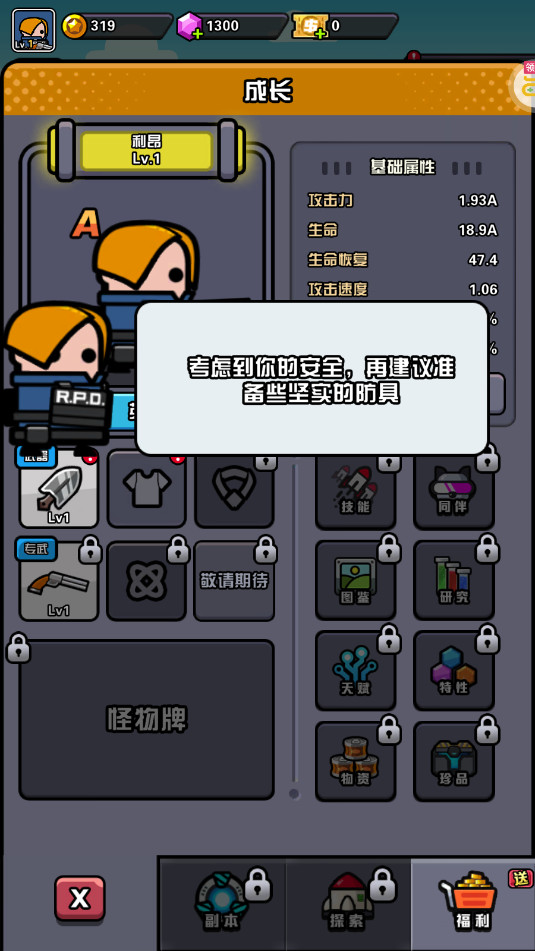 技能升级:完成指定主线任务解锁技能,将它们都解锁后,一有钻石,就召唤它准没错,开始就要打好稳固的基础。