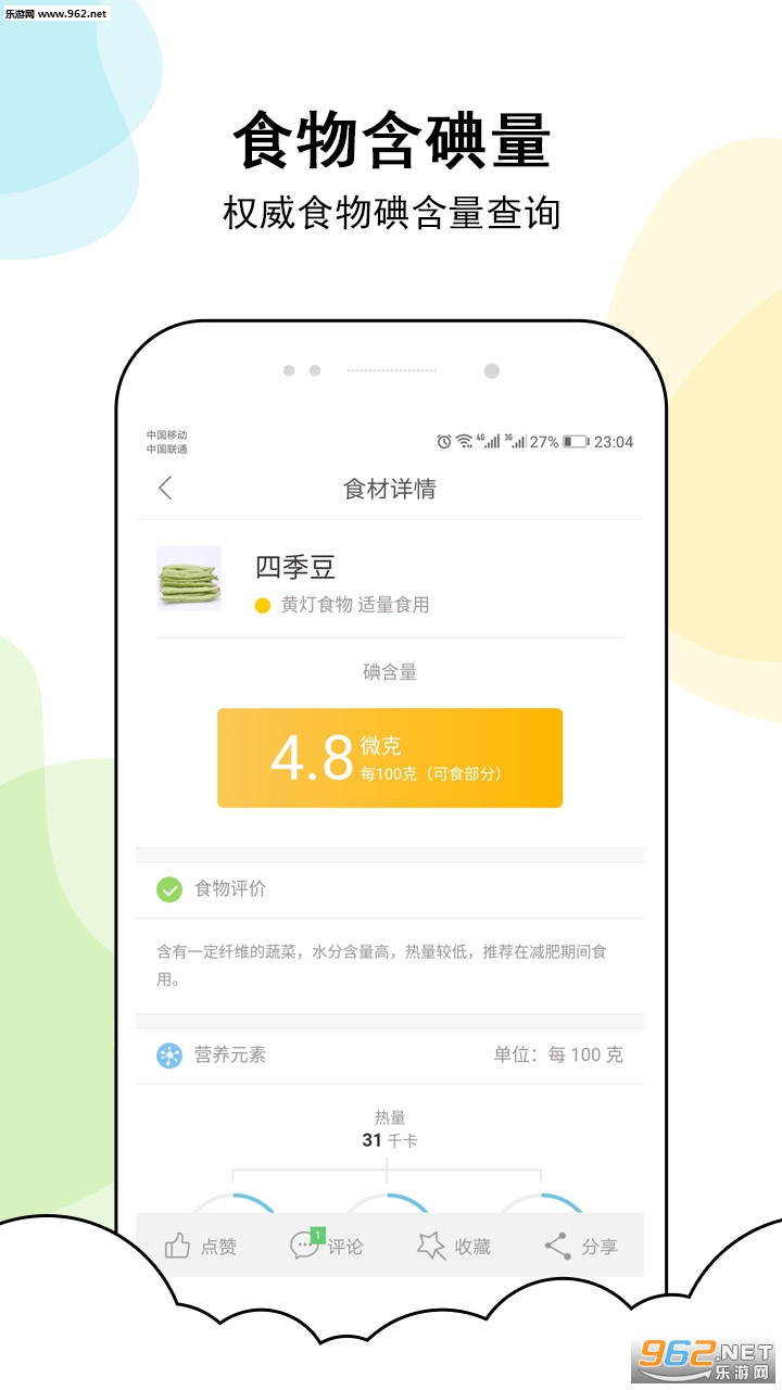 提供全面的食物碘含量查询,直观碘含量/热量展示