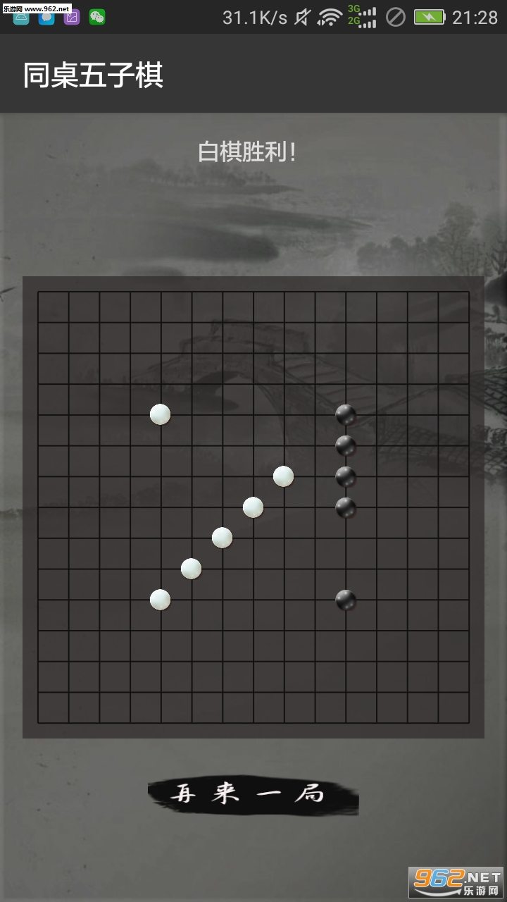 《同桌五子棋单机版》是一款非常有趣的棋盘游戏,棋子小巧,游戏界面美观简洁,运行速度极快,无需网络即可玩,快来通过自己的技术去战胜同桌吧!