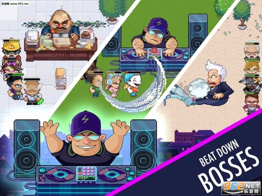 3、打败boss,当心dj的呓语,他疯狂的节奏和炸弹,避免办公室老板无情地堆在你身上的文书工作,选择正确的小队,取得胜利;