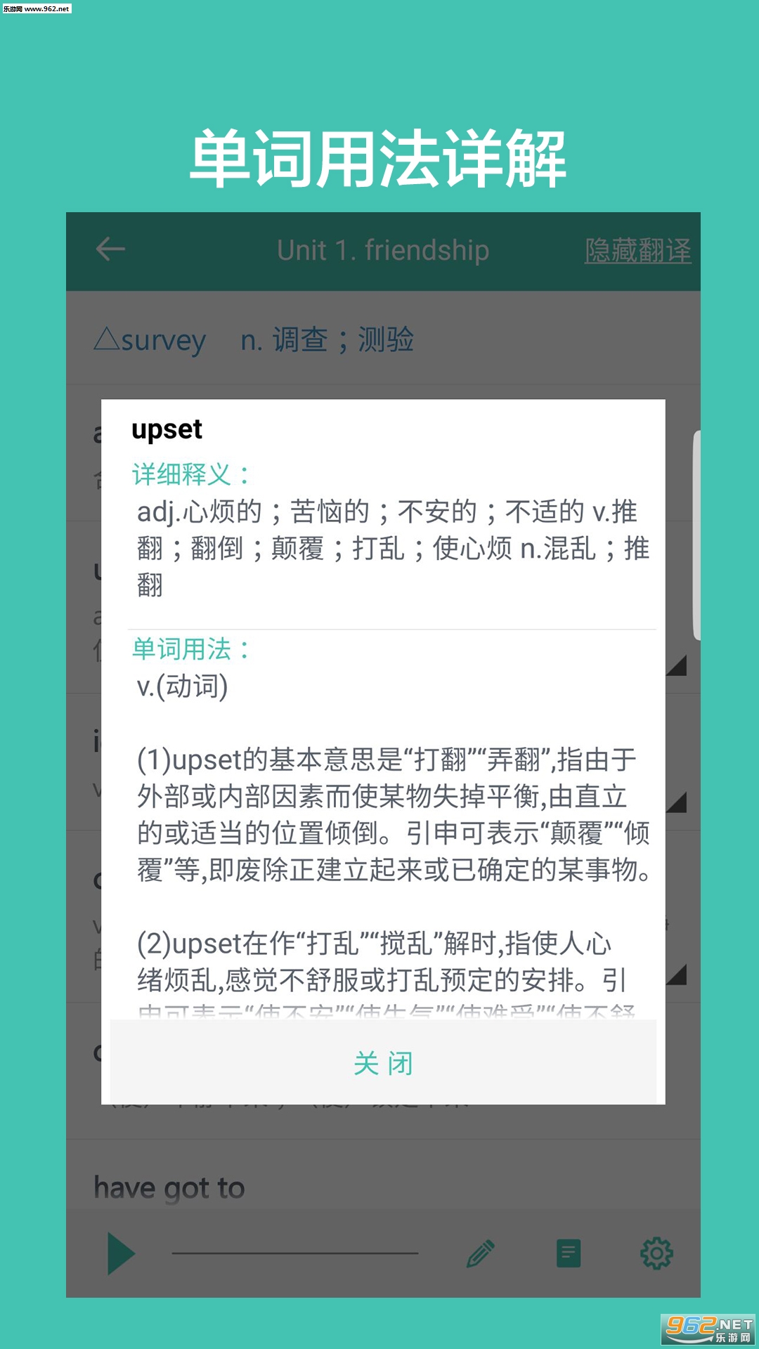 (3)单词列表精心排版,与教材保持一致,并且专门针对手机屏幕做了优化,阅读更舒适。