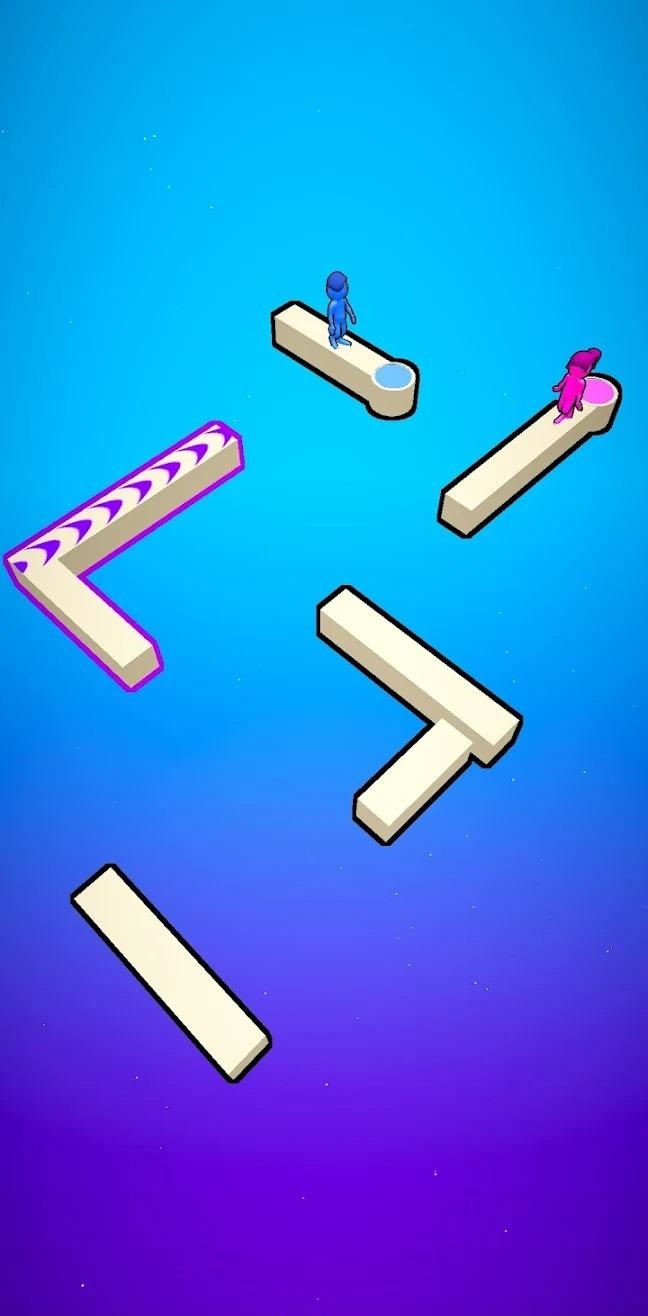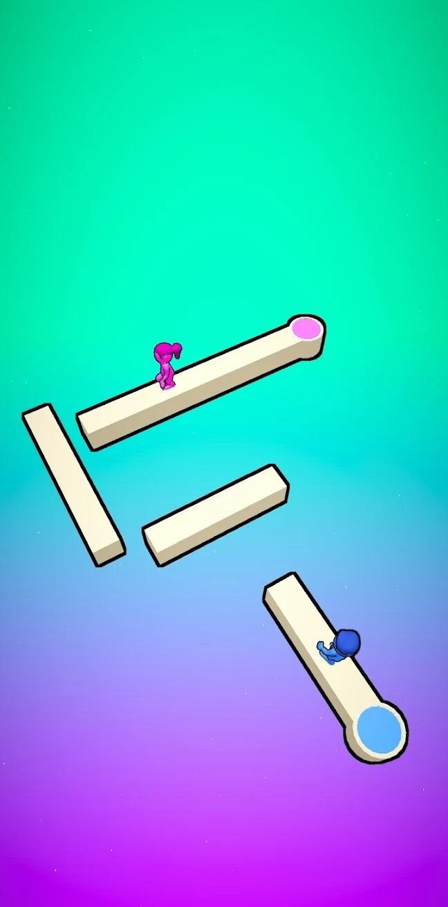 3、方块连接成功,这样帮助小人找到对方即可,不能让小人掉下去哦。