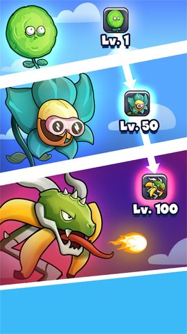 1、合成与塔防巧妙融合,合成并升级植物,抵御僵尸入侵。