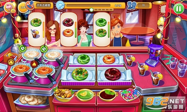 游戏流程:顾客出现 -- 站定后展示自己想点的菜单 --制作顾客所需菜品 -- 点击制作好的菜品 -- 顾客留下小费离开。