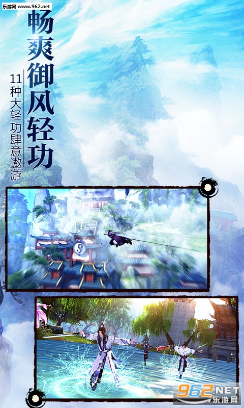 精心打磨的可操作御风轻功和九阴真经独有的战斗轻功,两相结合,给予玩家最纯正的武侠战斗快感。八大战斗轻功让PVP更富策略性和观赏性,代入感极强。华丽大轻功扶摇直上一览江湖美景,真正实现游戏战斗娱乐两不误。
