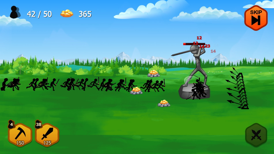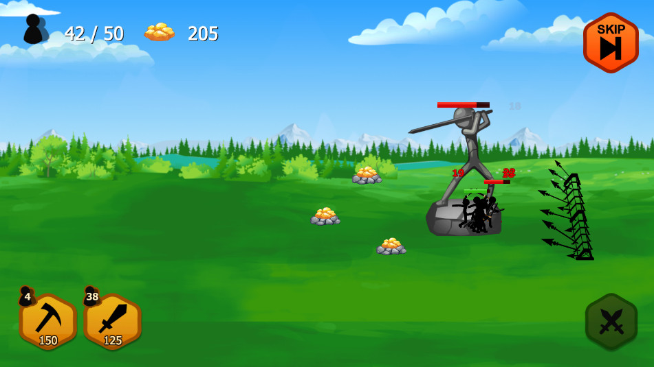 多样角色与武器:游戏提供了矿工、剑士、巫师、巨人等多种角色供玩家选择,每种角色都有其独特的技能和战斗方式。同时,游戏还拥有海量武器库,包括矿工更努力、剑士愤怒、治疗者等多种武器,能够大大提升火柴人的战斗力。