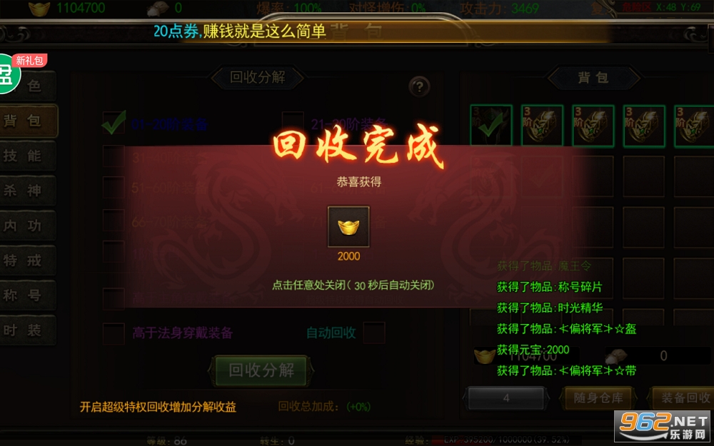 2:当你包包东西太多放不下的时候,寄售系统可以当临时的仓库,记得东西东西挂高一点元宝,等仓库有位置了再取出来。