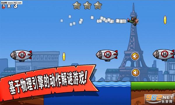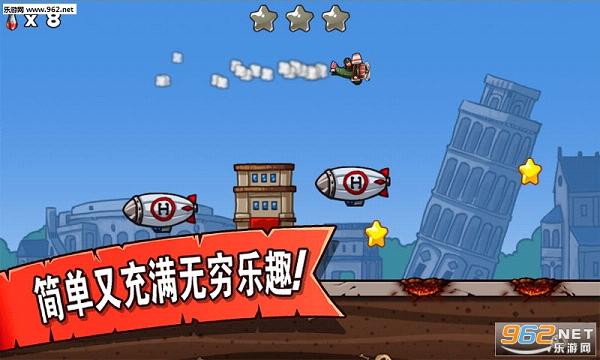 疯狂大轰炸是一款基于物理引擎的动作解谜游戏。帝国已经开始向全世界扩张,准备好了驾驶轰炸机来一次漂亮的反击吗?游戏的目标是让轰炸机安全降落,点击屏幕可以扔出炸弹清除跑道上的一切障碍物。注意每关炸弹的数量是有限制的,你必须在飞机燃油用完前安全落地。