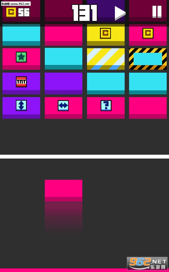 砖块不断逼近警戒线,用同色块完成消除,一段时间后会出现新的颜色,游戏难度也会随之变大,极限在 3000 分左右吧。