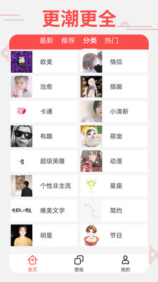 2、每日推荐最潮最流行的头像,包括情侣、欧美、治愈、插画、卡通、小清新、有趣、搞笑、萌宠、超级英雄、明星、个性非主流、可爱、二次元、星座、文字、唯美、简约等多种类型头像头像。头像星人必备!让你瞬间引爆朋友圈!