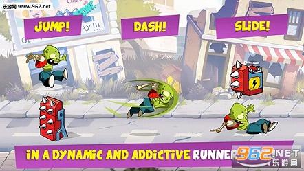 这是一款超魔性的休闲跑酷类游戏,游戏的画面还是蛮不错的,玩家需要冲刺、跳跃或者下蹲来完成挑战,操纵小僵尸踏着滑板不断前进,通过在屏幕上不同的滑动来躲避各种各样的障碍。吃下各种道具吧,同时记得也要小心身后追击你的敌人