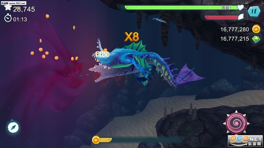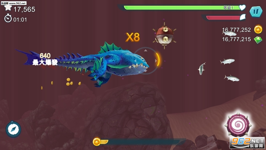 一款快节奏的大鱼吃小鱼游戏,游戏中玩家将成一条海底怪兽,不断的吞噬各种各样不同的生物,同时还有着各种各样的技能可以使用,游戏的玩法轻松有趣,还有着各种各样的道具能够帮助你解决各种各样的困难,控制鲨鱼畅游海底,推荐给喜欢休闲吞噬游戏的玩家。