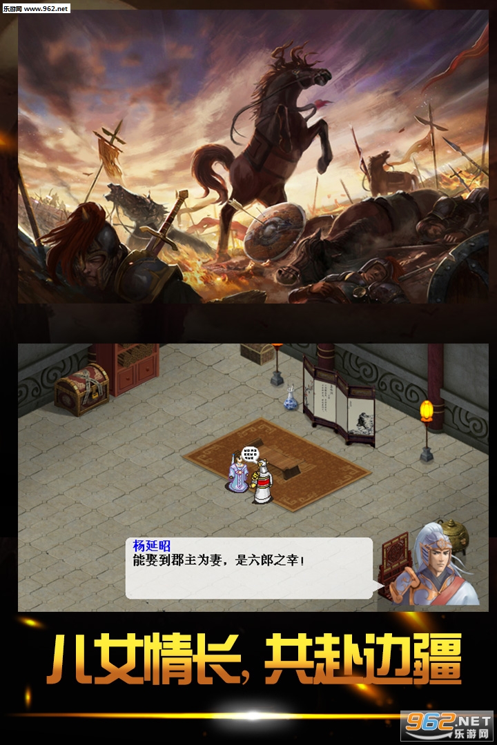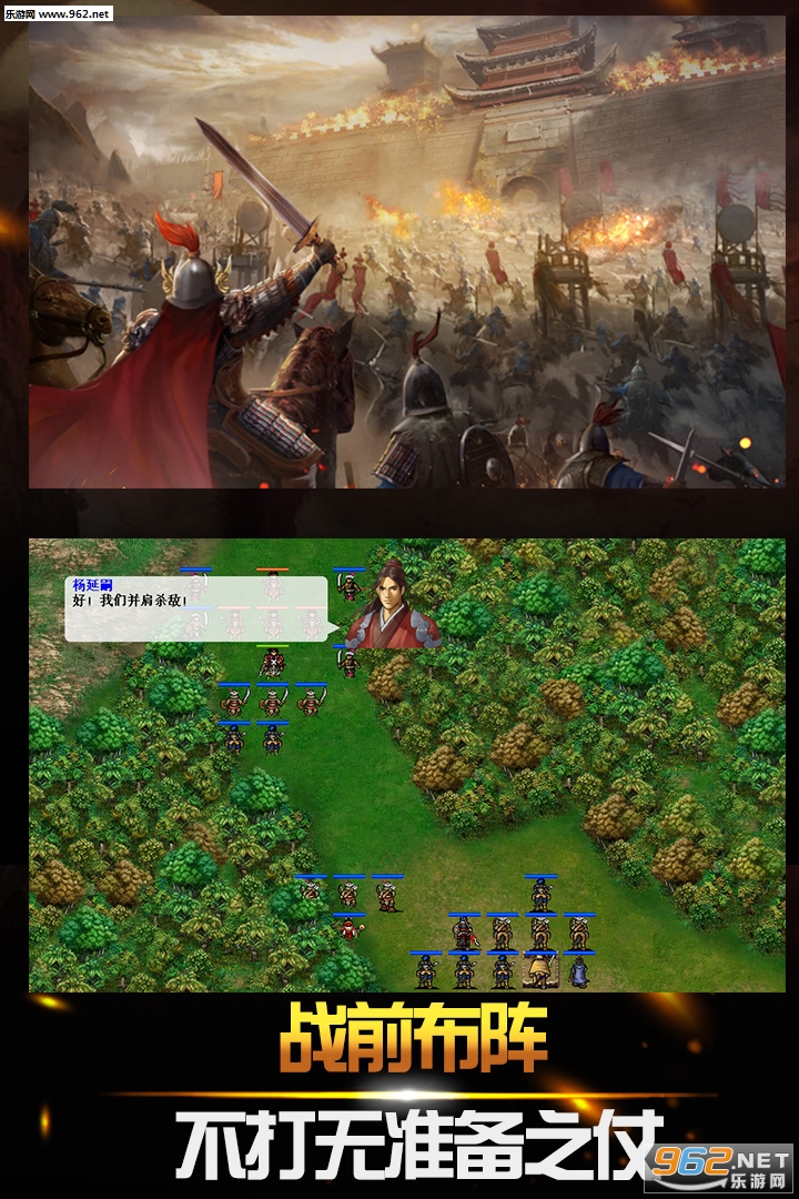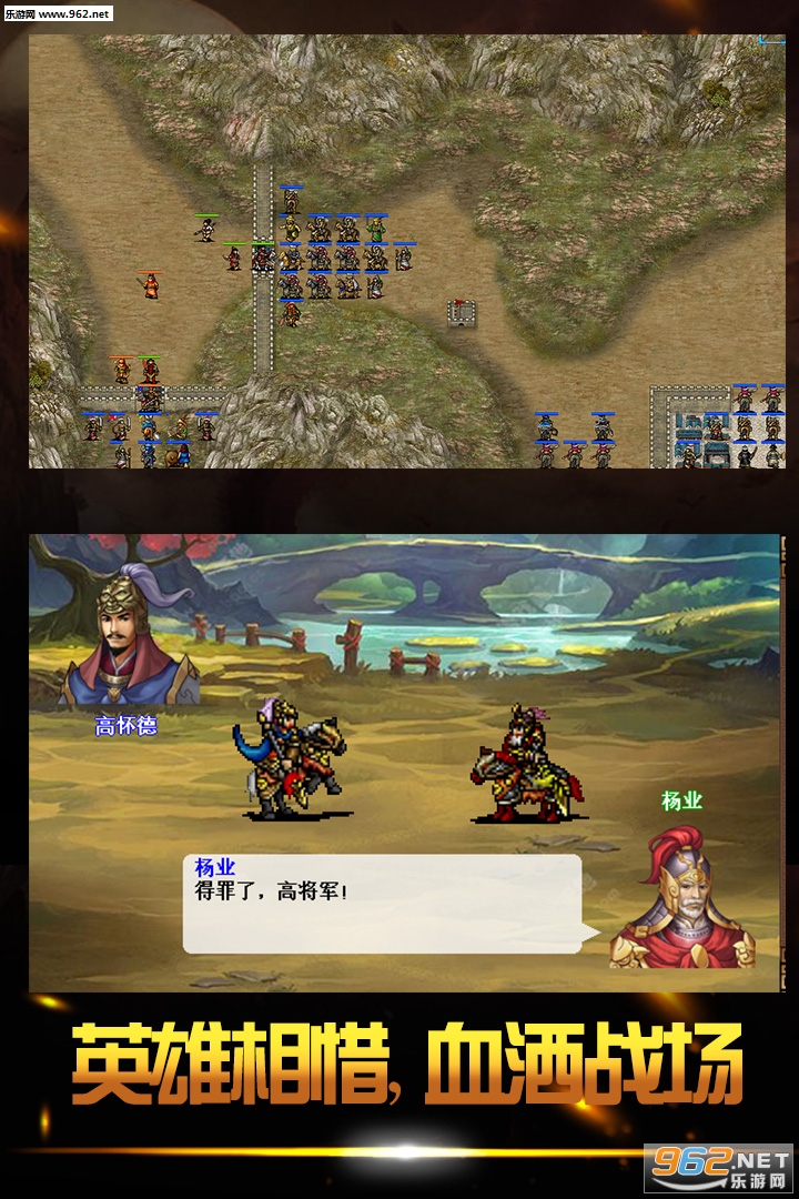 《杨家将演义》是一款以北宋时期杨门一家的历史为题材的单机SLG战棋手游,玩家可以与杨门虎将一同并肩作战,除奸臣、抗外贼,保护国家安危。玩家在游戏中需要注重特技的搭配,技能的合理运用,种类繁多的武器装备,武将特技,以及各式各样的关卡攻略技巧。