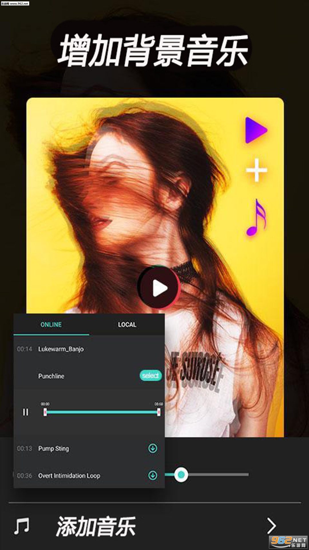 1. 添加免费背景音乐,或使用本地自定义音乐。