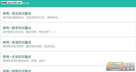高考重点知识大全是一款为即将参加高考的高中学生精心准备的学习软件!应用包含高中全部课程(高中语文、高中数学、高中英语、高中化学、高中物理、高中历史、高中政治、高中地理)的重点知识归纳:有高考理科(数学、化学、物理)必背公式大全和历年高考重点知识汇总,有高考文科(语文、历史、政治)必记重点及高考重点分析。