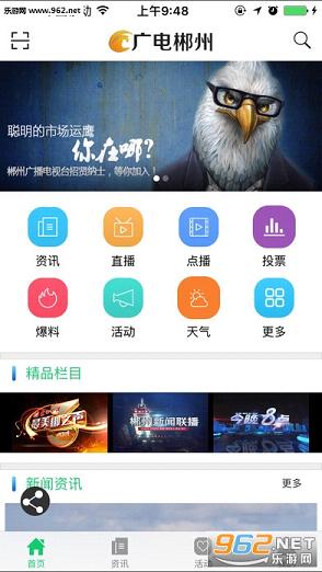 《广电郴州app》是郴州广播电视台重点打造以新闻资讯、互动服务、生活服务为一体的应用客户端,为郴州市民提供最新广播电视节目、各类资讯信息和便民服务。