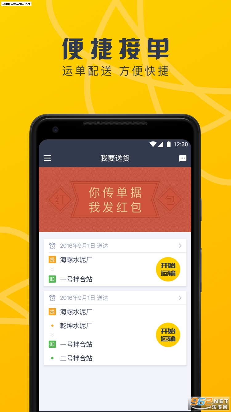 便捷接单,司机点击开始按钮即可开始运输;智慧运输,车辆到达相应的电子围栏范围内,触发相应的上传操作,并可领取红包奖励,提高司机运输效率和积极性。